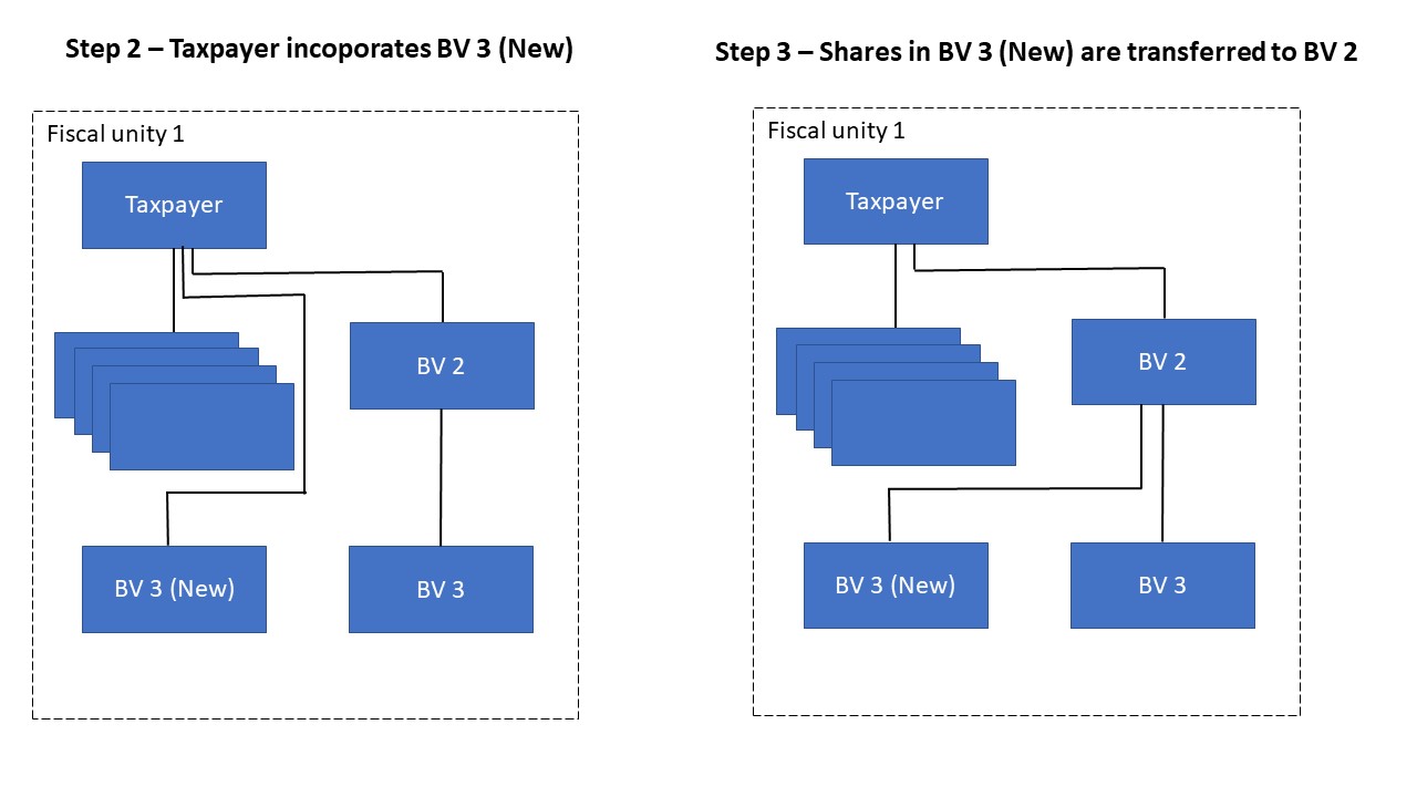 3. The shares in BV 3 New are transferred form the taxpayer to BV 2;