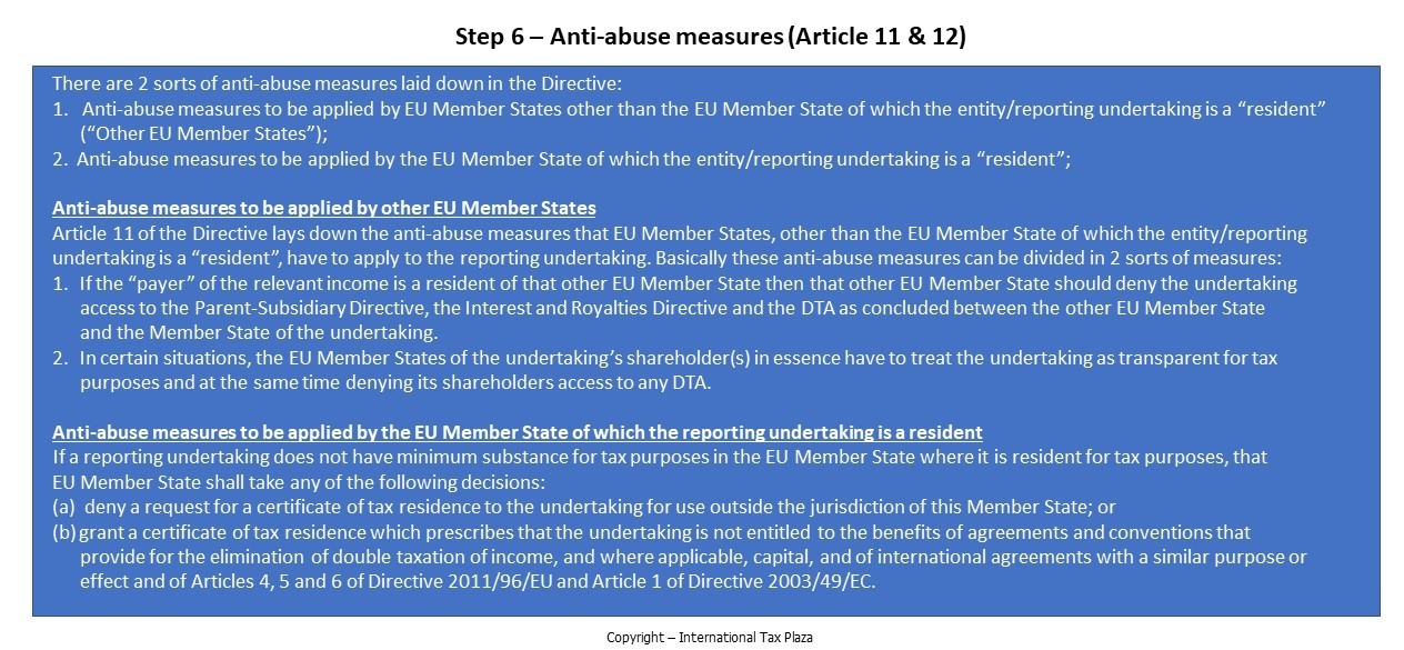 2. Anti-abuse measures to be applied by the EU Member State of which the entity/reporting undertaking is a “resident”;