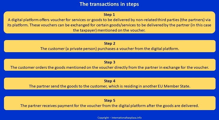 During the period in question (2011-2013), a customer who wishes to obtain a product or a service from the taxpayer purchases a voucher from [A] for this purpose. These concern [A] Vouchers. When purchasing such voucher the customer is aware that this voucher can be exchanged for a specific product as determined when purchasing the voucher. The customer pays [A] for the purchase of the voucher. If the customer wants a product, he turns to the taxpayer and exchanges the voucher with him and obtains the respective product. The taxpayer then transfers the voucher to [A]. After a deduction of a fee for the services [A] rendered to the taxpayer, [A] pays the amount received from the customer to the taxpayer.