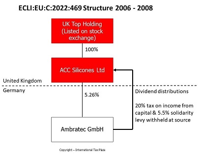 12 Between 2006 and 2008, Ambratec distributed dividends to ACC Silicones, from which tax at source was levied on income from capital at the rate of 20%, plus the solidarity levy at the rate of 5.5%.